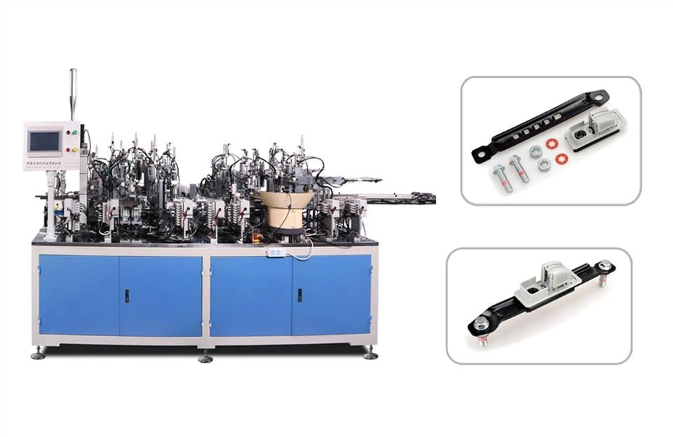 Deze apparatuur heeft een verwerkingsstructuur met meerdere stations en maakt gebruik van PLC en touchscreenbesturing om productassemblage, inspectie, onderscheid tussen goede en defecte producten en andere processen te realiseren. Tegelijkertijd zijn het oliën van het product, het voeden en monteren van de bodemkussentjes, het aandraaien van schroeven en andere processen voltooid.